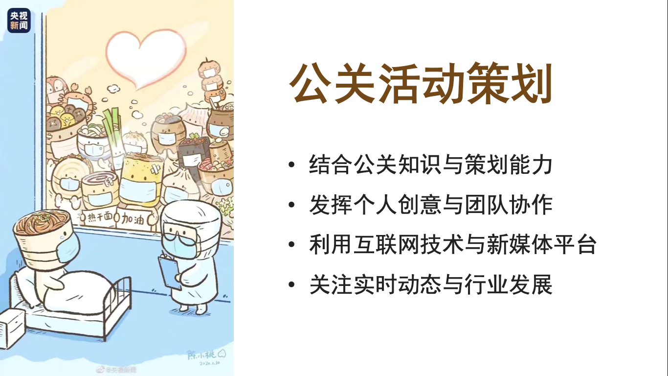 根据公关活动策划的步骤,需要设计出活动的主要内容与环节、确定时间与地点、列出主要参与活动的人员、制作活动预算等多个环节。同学们将致敬抗疫英雄、分享爱与关怀的想法融入到每一个环节的策划与每一个细节的设计过程中。