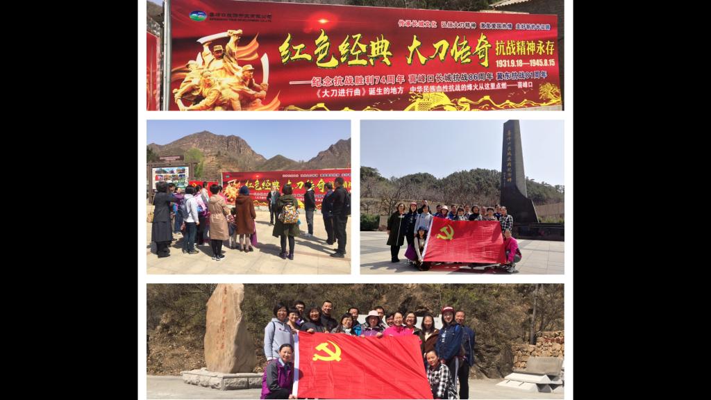 喜峰雄关大刀园的创建者、董事长张国华先生亲自为全体党员讲述了喜峰口战役的背景、过程及历史意义。全体党员参观了展厅,一件件战争时期珍贵展品和史实照片,还原了80多年前中国军民不畏列强,英勇抗战,保家卫国的壮烈画面。随后全体党员登老婆山,走英雄路,忆大刀魂,重温峥嵘岁月,缅怀革命先烈。那巍巍耸立的长城抗战纪念碑、坚不可摧的钢铁长城、栩栩如生的壮士雕塑、重达29吨的巨型战刀……不仅生动再现了一段可歌可泣的抗战历史,更集中展现了一种为民族独立自由而奋斗的“大刀精神”。全体党员真切感受到在那个炮火纷飞的年代革命先烈不畏牺牲、视死如归的爱国情怀,体会到中国共产党人肩上的责任和义务。