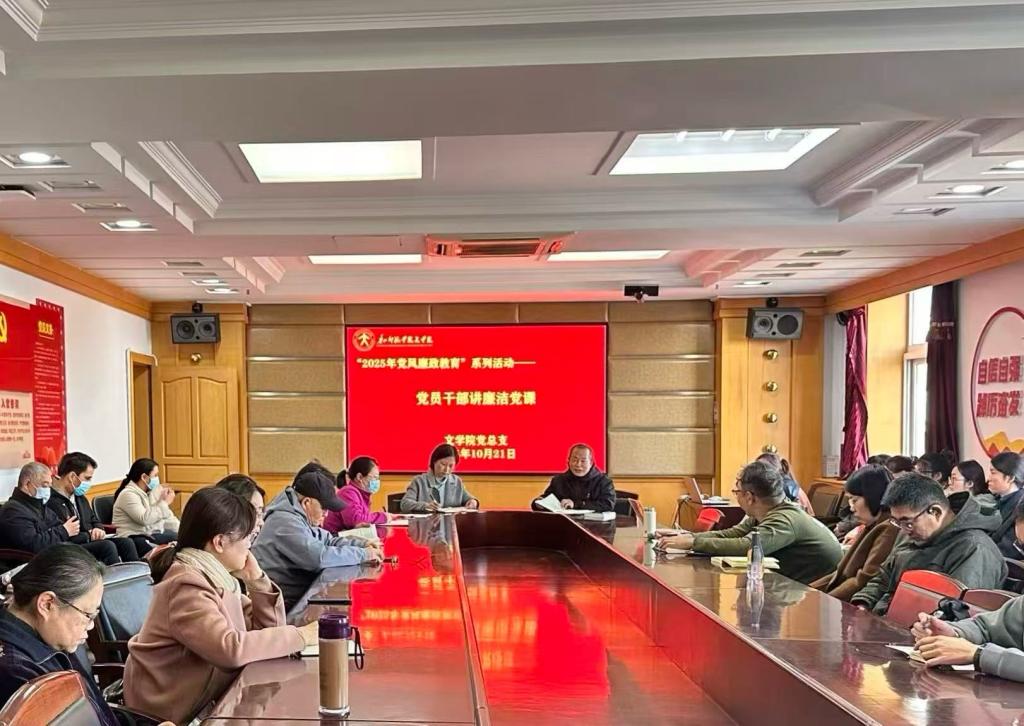 文学院党总支书记刘云伟以加强党风廉政教育为核心主题,为参与活动的全体成员讲授专题党课,通过剖析违纪案例,深入浅出传递廉洁理念,强调全体党员干部们应当以案为鉴,警钟长鸣,为本次实践活动筑牢了思想根基。