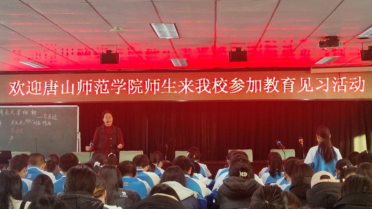 2024年12月3日,文学院组织汉语言文学专业2022级师范生到唐山市玉田三中进行教育见习活动。玉田教育局刘青松科长,玉田三中刘守占校长、赵金富主任等领导老师,唐山师范学院文学院董海欣、王瑜、李凯老师以及2022级117名同学参加了本次活动。