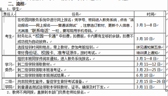 本学期普通话培训和测试报名工作已开始,纸质通知已由二级学院发给各班学委。现将报名事项简要通知如下: