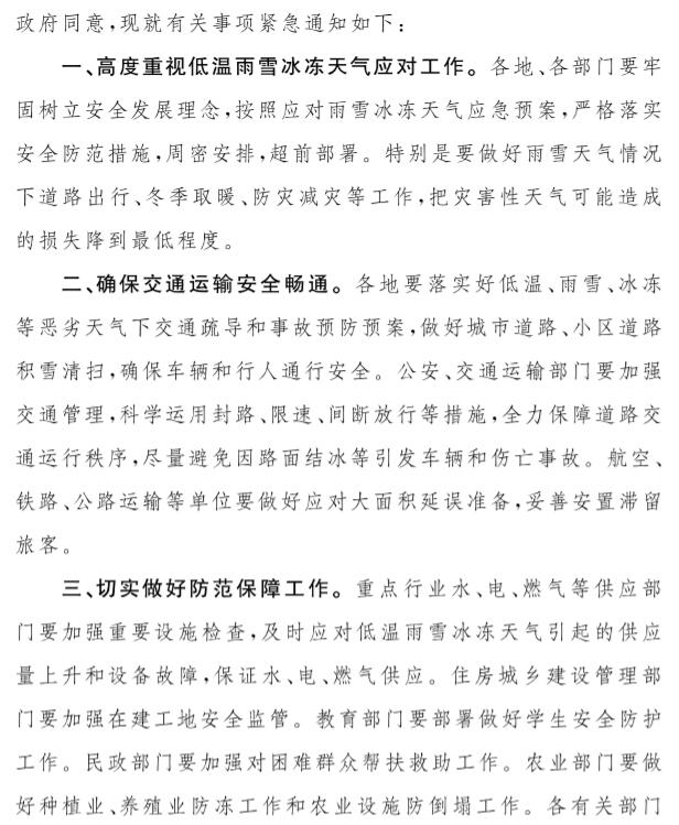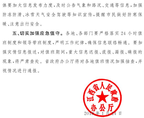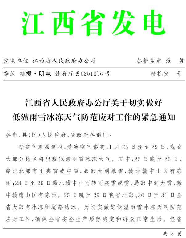 江西省人民政府办公厅关于切实做好低温雨雪冰冻天气防范应对工作的紧急通知