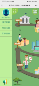 2.依次点击“开始闯关”“点击登录”“点击登录闯关”图标,输入校园卡号和默认密码: “@Jju+身份证后六位(例如:@Jju025684)”。