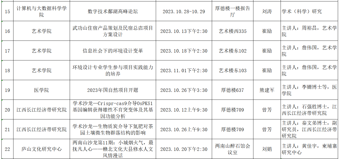 九江学院2023年10月学术(科学)研究、教学研究活动预告
