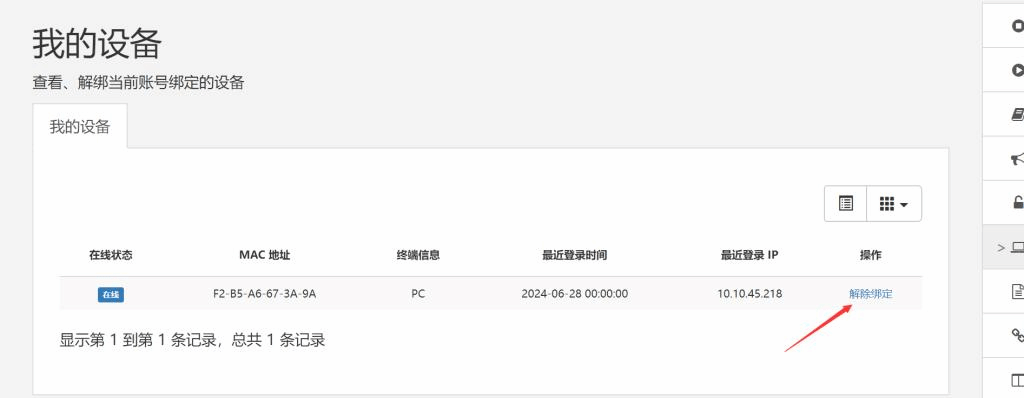 若该终端无需再使用无感认证功能,可登录校园网自助服务网址进行解绑/index.html(注意大小写,请收藏该网址),如下图所示: