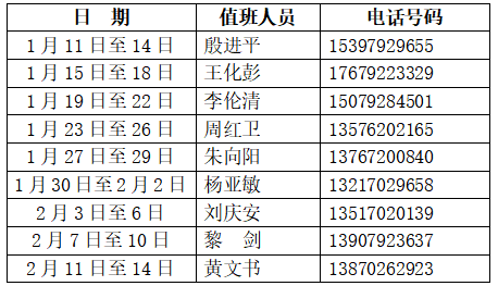 2025年寒假期间水电维修小型维修值班表