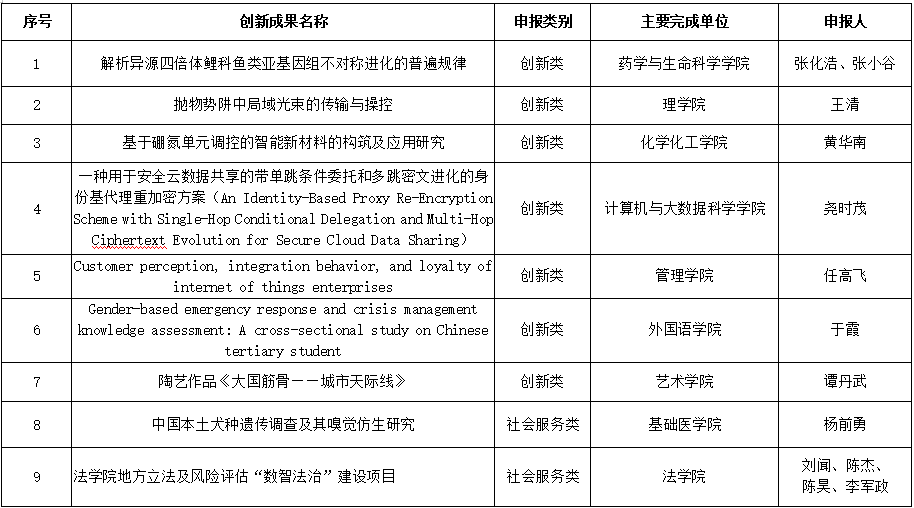 九江学院科学研究和社会服务“创新成果奖”评审结果公示