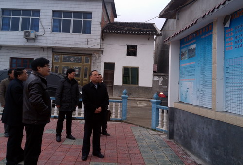 经过三个多小时的车程,甘校长一行抵达九宫村。武宁县人大副主任陈绪洲陪同走访慰问。在村部,甘校长听取了乡党委赵书记关于村建扶贫的情况汇报,询问了九宫村的基本情况、村民的生产和生活状况、经济收入来源等。当得知三年来学校对九宫村开展的帮扶所取得的成效,甘校长深感满意。随后甘校长一行来到九宫村新农村建设点,实地查看了村容村貌。