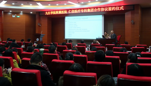 合作协议签约仪式结束后,随后举行了学术讲座。意大利米兰大学病理科主任Giuseppe Viale教授作了题为“肿瘤病理学研究新进展”学术报告;香港大学周永昌教授作了“乳腺肿瘤诊疗新进展”的学术学术报告。