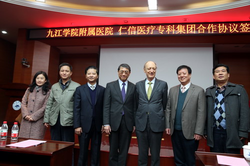 仪式上,临床医学院/附属医院院长张志平与香港仁信专科集团董事王海星共同签订了双方合作协议。根据协议,双方合作分为三个阶段。第一阶段:自2015年1月起,双方共建附属医院乳腺(肿瘤)科。附属医院负责场地、人员、设备等的准备和筹建,办理来院专家、教授工作的手续及工作资质的认定等。仁信集团负责提供符合资质的国际一流专家、教授团队来院工作。第二阶段:双方共建的附属医院乳腺(肿瘤)科做大做强后,条件成熟时,向省卫委申报“九江学院国际乳腺中心”。第三阶段:“九江学院国际乳腺中心” 做大做强后,条件成熟时,向省卫委申报“九江学院附属乳腺(肿瘤)专科医院”。