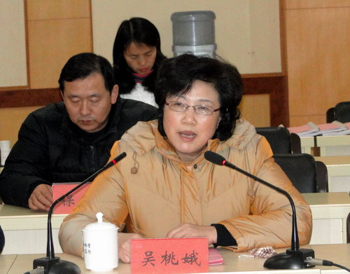 吴桃娥代表学校对考评组来校检查指导工作表示热烈欢迎。她简要介绍了学校的基本情况和我校2014年改革发展取得的突出成绩,并表示,学校将以考评检查为契机,以评促建,以评促改,进一步夯实工作基础,创新求进,大力提高学校综治工作能力,确保学校平安和谐稳定,并希望检查组一行多对学校工作指导,多提宝贵意见。