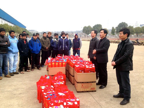 随后,杨耀防副校长代表学校向留学生们送上节日慰问品。收到节日礼物的留学生们兴高采烈,亲身感受到了学校送来的温暖和祝福。