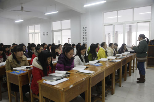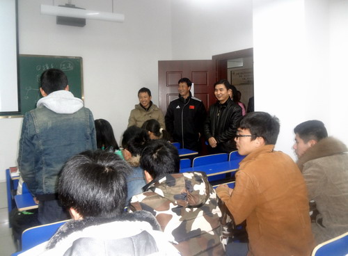 甘筱青校长、纪岗昌副校长来到竞知楼,听取了理学院沈红博士讲授的《大学物理》课程。沈红是学校新引进的博士。听课结束后,甘校长对沈红博士的授课进行了点评,并与她探讨了教学的方法、技巧。