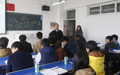 听课结束后,郑书记对课堂教学进行了点评。郑书记认为,这堂课课堂纪律很好,同学们听课专注,教室卫生好。郑书记希望授课教师能在板书、教师仪态方面进一步加强;授课中,要结合当今实际,利用当前经济社会中发生的重大时事等实例,加强教学中对同学们思维的启迪,兴趣的提升,引导同学们积极思考。