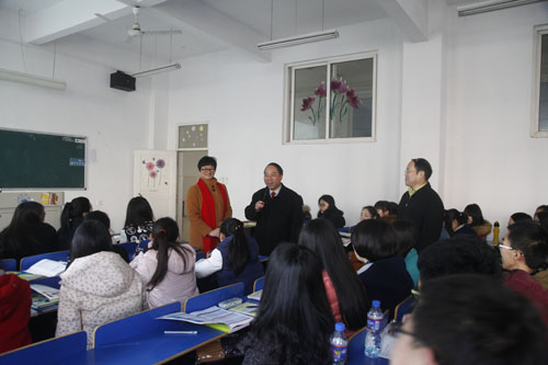 第一课检查结束后,校党委书记郑翔,校长甘筱青,副校长吴桃娥、纪岗昌、陶春元等到相关班级听课。