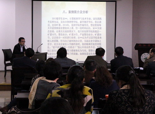 最后,复赛评委、电子学院党委书记孙小明作了点评发言。他从解题思路、方法和技巧等方面分析了比赛中选手们的表现及不足,对辅导员进一步提高职业技能、提升学生管理工作水平有很强的指导作用。