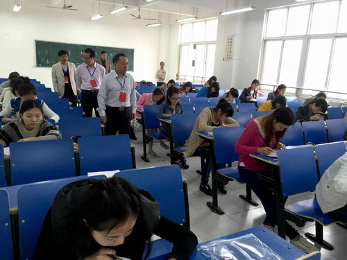 考试过程中,校长甘筱青、副校长陶春元亲临现场,并巡视了各考场。整个考试过程中,教务处工作人员严格按照全国高校专业英语测试办公室的要求,选用安全、安静、整洁、通风、采光条件好的教室作为考场,按照考试规范张贴考场门贴和考生桌贴等标示、布置考生座位间距,考场所在教学楼安排专人把守,无关人员一律不得入内。所有监考教师能够认真履行工作职责,不包庇纵容考生作弊。