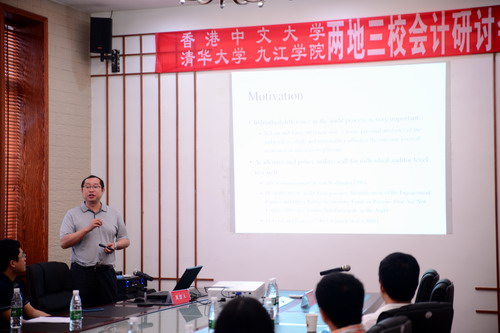 研讨会Research Workshop2由香港中文大学会计学院Yong George Yang教授主持。会上,清华大学经管学院李馨子博士围绕“政府补助、约束性和未来盈余”进行报告交流,九江学院会计学院陈小林教授做了“The Effect of Individual Auditor Overseas Experience on Audit Quality: Evidence from China”的论文报告。香港中文大学会计学院教务科长Wong Ka Lok和九江学院会计学院副院长蔡报纯,分别就情景案例教学、课程建设、教学方法、教学管理、人才培养特色等进行了专题报告。