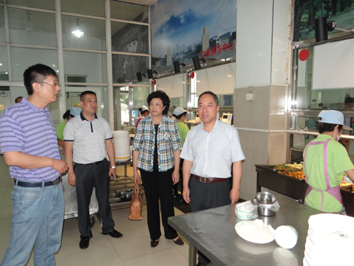 6月18日中午,校长甘筱青、副校长吴桃娥来到学生三食堂检查指导工作,看望昨夜加班的食堂工作人员,并到学生中间了解同学们的情况。后勤管理处处长姜东升随同检查。