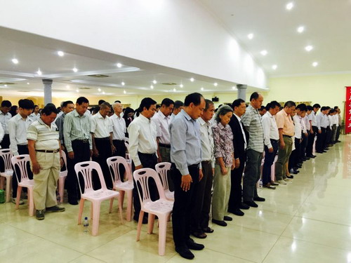 座谈会现场挂着“弘扬抗战精神,建设和谐侨社”、“促进中柬友谊、迈向美好未来”的大字幅,体现此次活动的意义。布建国大使在座谈会上发表讲话,回顾了给人类带来空前浩劫的第二次世界大战及中国人民抗战历史,强调以史为鉴,维护来之不易的和平局面,避免历史悲剧重演。