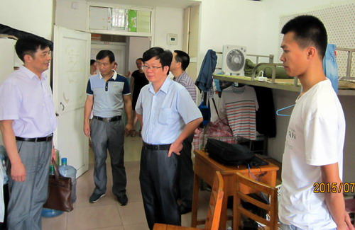在学生宿舍16栋、24栋,王副校长与考研同学进行了交谈,传达了学校对考研同学的关心,询问了同学们的学习生活情况,听取了同学们考研复习情况,同时建议同学们注意合理安排时间,劳逸结合,利用暑假为考研打下坚实基础。同时他还要求宿管中心负责同志要做好宿舍水电保障工作,以及留宿同学出入宿舍登记等宿舍安全管理与卫生维护。