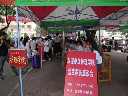 “热情、周到、整洁、安全有序、树立形象”是学校对今年迎新工作的总体要求。记者在与新生及其家长的交流中,感受到了全体迎新工作人员和志愿者工作的成果:“学校服务太周到了,同学们特别热情,孩子在这里上学,我很放心”,一位护理学院学生家长对记者说。来自贵州的彭同学来办理生源地贷款时告诉记者:“我的家庭很贫困,当看到了绿色通道仿佛就看到了希望,感谢学校给予我的机会,我一定会努力学习,不辜负所有人对我的期望。”会计学院迎新工作志愿者姚莹莹说:“为了提高服务质量,我们已经提前开会制定了合理计划,明确了每个人的任务,保证新生所问的问题都能在这里得到解决。”