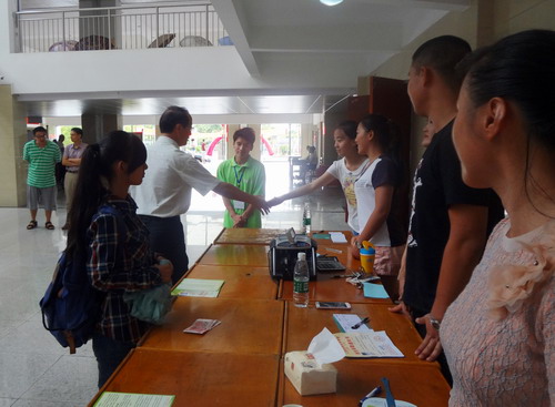 陶春元首先慰问了报道现场的工作人员,与他们亲切交谈并一一握手,对他们这几天的辛苦工作表示肯定。在体育学院和政法学院报到处,陶春元详细询问了新生报道情况,并与现场的新生及家长亲切交谈,询问学生的家庭情况以及对学校迎新工作的感受,勉励新生尽快适应大学生活,努力学习、早日成才。