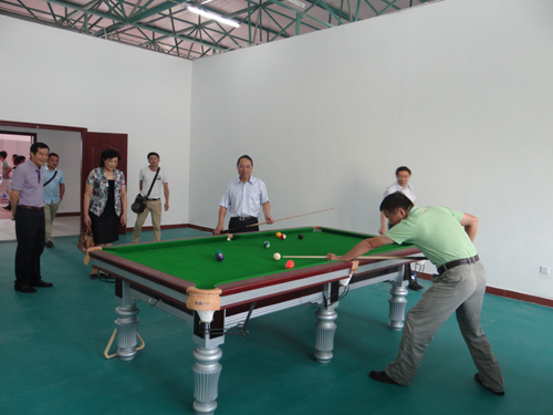 慰问结束后,甘校长一行详细查看了新教职工活动中心的健身房、兵乓球馆、台球馆、形体训练房、多功能厅等场地、设施。