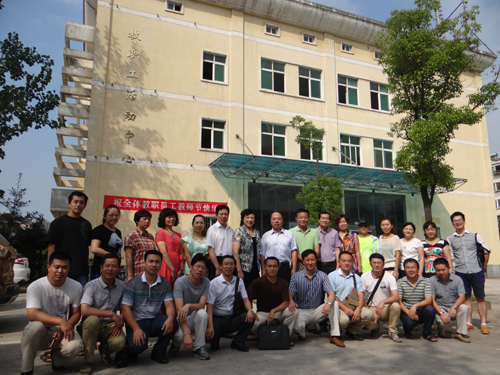 随后,校领导与工会各分会主席、教师代表在新教职工活动中心前合影留念。