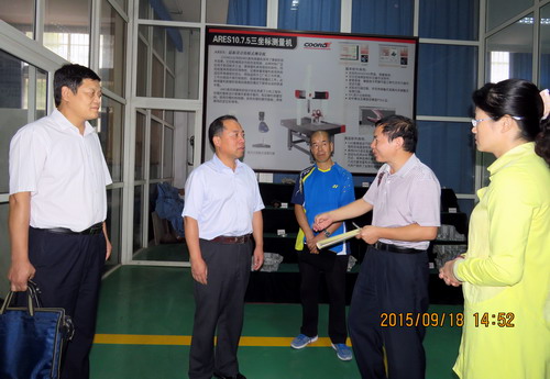 在数控技术与重点实验室产品陈列柜台前,机材学院院长张德勤向甘校长介绍了该院承担的一些横向课题的产品成品或半成品,甘校长对机材学院主动承接横向课题、提高设备使用率的做法给予肯定。甘校长特别对机材学院柔性引进的华中科技大学院士团队的工作给予了高度评价。