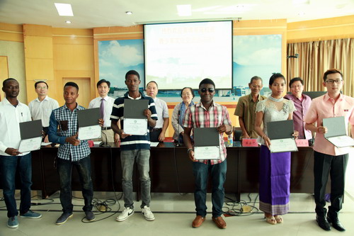 致辞后,甘筱青校长与克罗提达院士为2015年孔子学院奖学金生颁发证书,并共同主持第四届柬埔寨语培训班开班仪式。柬埔寨奖学金生和柬埔寨培训班学生代表分别发言。克罗提达院士还给九江学院师生作了题为《柬埔寨董文化》的精彩讲座。