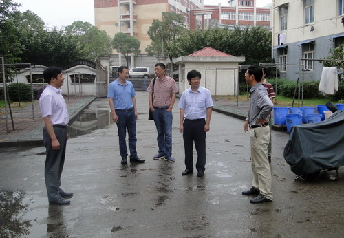 王副校长一行首先来主校区学生宿舍26栋,查看了宿舍外墙漏水情况和门前垃圾袋装化情况。要求宿管中心会同基建处对学生宿舍外墙漏水情况进行一次统计,并尽快做好宿舍外墙防水处理工作。王副校长肯定了宿舍垃圾袋装化取得的成效,同时要求宿舍管理中心做好垃圾桶周围的垃圾清扫工作,保持宿舍的整洁。