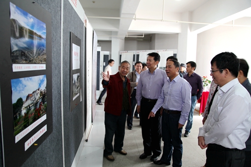 金秋流彩,丹桂飘香。10月9日上午,由校党委宣传部、校工会、离退休职工管理处、艺术学院、老年文学艺术协会联合举办的“纪念抗战胜利七十周年暨国庆六十六周年教职工书画摄影展”在逸夫楼图书馆一楼展览厅正式开展。校领导郑翔、甘筱青、吴桃娥、王万山、魏立平、杨耀防来到展厅,欣赏和观摩教职工的书画摄影优秀作品。