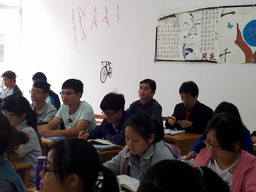 10月14日上午,校纪委书记魏立平来到文友楼217A教室,同理学A1511班同学一起听取了许成锋老师的《数学分析》课。理学院书记邹国辉一同听课。