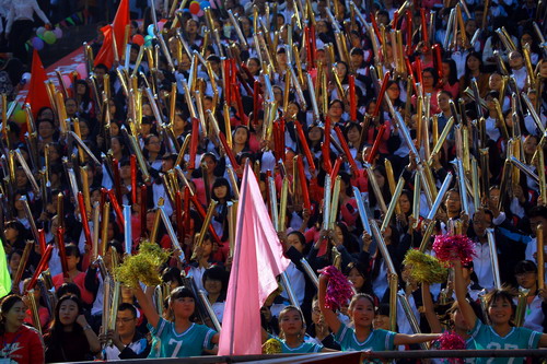 校长甘筱青致开幕词。甘校长指出,体育既是促进学校发展,实现培养目标的重要手段,也是学校加强精神文明建设,培养学生优良品质的重要举措。近年来,学校多次组队参加全省,全国乃至国际性的比赛,成绩喜人,为学校争取荣誉。举办运动会,是对我校体育工作,师生精神风貌和综合素质的大检阅。