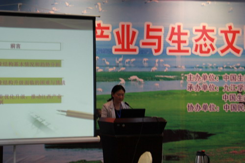 分会场报告阶段。在理论与对策分会场,来自江西省社科院的李志萌研究员、山东大学谢京辞博士、辽宁省社科院江楠研究员、九江学院基础医学院汪鑫教授、九江学院经管学院杨盛标副教授以及九江学院鄱阳湖生态经济研究中心尹科副教授分别做了理论与对策方面的报告。而在技术与方法分会场,来自江西农大的李志敏教授、九江学院药学与生命科学学院张小谷教授、九江市环境保护监测站淦峰高级工程师、九江学院信息技术学院冷清明博士、九江学院鄱阳湖生态经济研究中心程鹏飞、邱秀文副教授分别就基因工程、分子生物、生态水位、信息技术、废水处理与污泥处理等环境保护技术进行了交流。