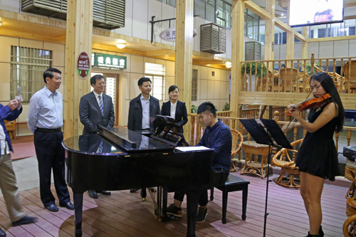 郑书记首先来到行政办公楼九楼会议室、四楼会议室查看会场情况,随后前往装饰一新的临床技能中心以及教学楼,重点查看了临床技能中心六楼数码显微互动实验室、检验综合实验室,四楼模拟产房,三楼中央监控室,二楼模拟ICU、急救技能训练室,一楼外科临床技能实验室、模拟手术室等,他对临床技能中心规范的设置、先进的设备给予了肯定。随后,郑书记查看了一号教学楼装修改造情况,看到校园环境焕然一新,干净、整洁,郑书记点头称赞。晚间,郑书记还参观了校园夜景,夜晚的校园仍然灯火通明,尤其是改造后的围墙,既起到了夜间照明效果,又宣传了校园文化,美观、别致、大方。来到住院部一楼,休闲茶吧温馨舒适,现场的钢琴和小提琴合奏旋律美妙动听,郑书记不襟驻足聆听并对艺术学院演奏的同学提出建议,他对临床医学院/附属医院浓厚的文化氛围表示赞许。