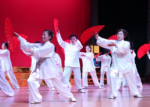 随后,文艺汇演在极具民族特色的《武当太极剑》表演和气势蓬勃的大合唱《在太行山上》《团结就是力量》中拉开帷幕。朗诵《我深爱着我的祖国》,道出了老同志对伟大祖国的心声。20多位气宇轩昂、婀娜多姿的老年模特一出场就嗨翻全场,将演出推向高潮。在热情洋溢的民间腰鼓表演和柔和唯美的舞蹈《中国美》中汇演圆满结束。