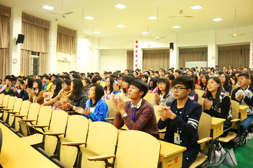 聘任仪式之后,杭州葫芦娃集团董事长唐正荣校友和杭州杰夫电子商务有限公司董事长姜洪峰以《我的创业之路》为题与同学们分享了他们的创业经历。他们以自己的亲生经历为同学们带来了一场情真意切、幽默风趣、睿智严谨、深入浅出的精彩讲座。在分享自己工作经验和人生感悟的同时他们还不忘勉励同学们要有梦想和激情,要讲诚信,要学会感恩,要学会团队合作,要学会敬业尽责,要学会创新求变,多思考多积累,努力将知识内化为智慧,实现自身价值观的提升。两位客座教授精彩、睿智的语言,不时赢得阵阵掌声,使同学们了解了社会实际,开阔了创业视野,获得了思想启迪。