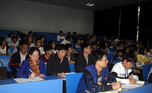 10月30日上午,杨副校长在廖院长、严书记和吴助理的陪同下,随机听取了在思贤楼阶一教室陶热老师给A1451和A1551两个班75名同学讲授的《普通生物学》课程。课堂上,陶热老师以代表性动物为例,总结了腔肠动物门的特征,讲解了腔肠动物的分类;讲解过程中,陶热老师时而穿插相关知识点,时而启发同学思考问题,语言流利生动,互动效果甚好。杨耀防副校长在课后与陶老师进行了交流,并对陶老师这堂课进行了点评,他特别赞赏了陶热老师授课与学生的互动性和启发性,也对学生提出祝愿,祝学生学习愉快,且希望学生今后能带着批判提问的态度去学习。