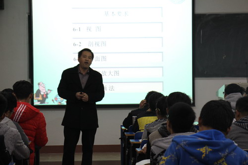 11月11日下午,王万山副校长来到竞知楼702教室,与机材学院A1513/A1571班同学一起听取了胡孔刚老师讲授的《机械制图》课程。机材学院党委副书记陈胜才和副院长王英惠一同听课。