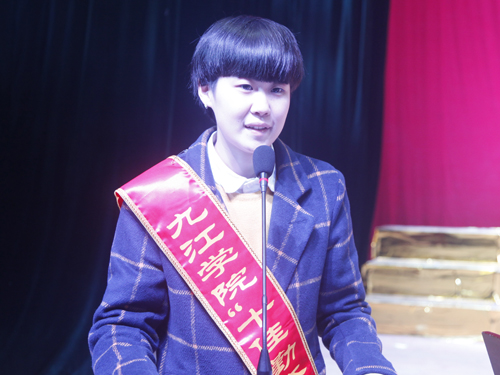 颁奖仪式结束后,叔子爱莲奖学金获得者、“双十佳”学生代表:会计学院高良广、经管学院李湾、药生学院周昊、文传学院彭琳、体育学院罗金磊、艺术学院侯锋锋、信息学院邬思娜等七位同学先后作了事迹报告。他们分别与同学们分享了各自的成长经历、学习经验、道德养成和对荣誉的理解。七位同学的发言真诚、质朴,他们的事迹生动、感人。同学们用热烈的掌声向他们表达了祝福与敬意。