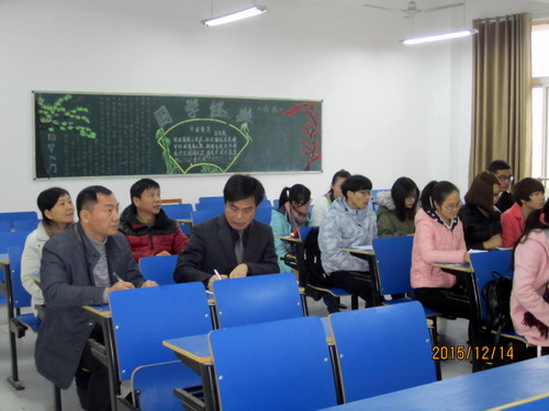 12月14日上午,杨耀防副校长到香远楼520教室,同2014级英语翻译方向同学一起听了外国语学院赵宋文老师讲授的《英汉口译基础》课程。外国语学院党委书记杨杰,副院长罗其娟,副院长柴克清一同听课。