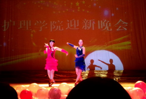 精美的舞台布置、绚丽的灯光彩束、人气爆棚的现场气氛,晚会打造了绚丽的舞台效果,现场流光溢彩,各色灯光交相辉映,场景布置简洁大方。健美操《啦啦歌》率先登上舞台打响第一炮,齐聚力度与美感,传达出护理学子独有的青春与活力。爵士舞《Good Boy》、《Lion Hearts》、拉丁舞《Chilly Cha Cha》等动感十足,活力四射,舞者良好的柔软度和协调性令现场观众大为称赞;壮族舞《走在山水间》则带我们走进异域领略其独特风情,原生态的特色一展其热情和开放;而古典舞《青花瓷》融入中国风元素,韵味十足,诠释出古韵新腔,舞者眉目流转间展现了传统文化的无限魅力。歌曲独唱《Sparks Fly》节奏明快,欧美范儿十足;深情之声,倾心演绎,歌曲串烧《岁月如歌》带我们回味经典,更是一次对心灵的洗礼。在魔术秀节目中,魔术师与现场嘉宾所进行的完美互动,将晚会推向高潮,观众的掌声、欢呼声不绝于耳。而相声《如此创业》亮点迭起,取材时代热点,极富时代气息,诙谐逗趣的同时也引人深思,挖掘出当代大学生的思想特征。曲调悠扬、旋律动听的大合唱曲目《南泥湾》采用了和音、交错等演奏方式,呈现出环绕立体效果,毫无疑问成为晚会的压轴之作,为本场晚会添上了圆满句号。