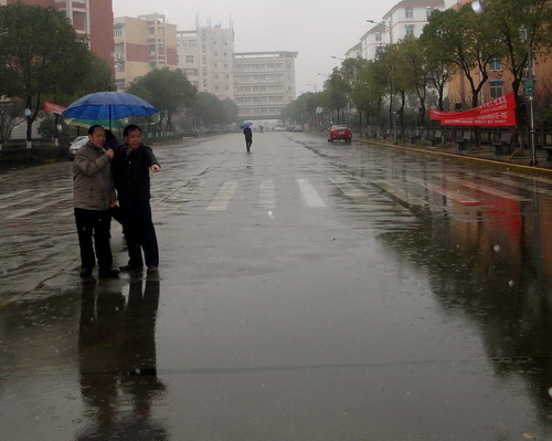 纪副校长一行又来到文友楼察看,在文友楼对面的濂溪大道上,由于路面不平,路面被积水淹没,影响师生出行和交通安全。纪副校长要求基建、国资等部门及时处理,消除安全隐患。在文友楼门前和文友楼一楼楼梯口,纪副校长发现有垃圾随意堆放,影响校容校貌,他要求后勤和教室管理部门加强管理,及时清理垃圾。在文友楼一、二楼之间的墙上,有一个楼栋电表箱,由于墙体渗水,电表箱里面的设备已经烧坏,文传学院多次向有关部门反映,但一直没有解决。对于这个安全隐患,纪副校长要求党办通知后勤、水电、国资、基建等部门协商,立即行动,尽快解决这一问题,消除安全隐患。纪副校长又来到理学院办公场所察看,理学院相关负责人反映,学院办公场所太过分散,不便于工作,希望办公场所能相对集中,以便于更好的工作。