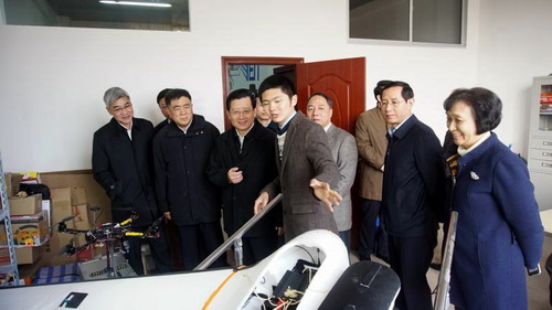 在九江永兴化工科技开发有限公司,强卫书记同公司负责人王建国老师亲切握手、热情交谈,当他听说王老师是学校在职老师时,对他与校外企业合作开展科研活动表示赞赏,并详细了解了经费来源、成果转让等情况。在九江乐智高机器人科技有限公司,强卫书记与公司负责人张广顺老师进行了交谈,观看了机器人表演,询问他的机器人研究有哪些特色,取得了哪些成果。强卫书记对我校教师将产学研相结合、积极创办科技园企业给予了高度评价。在九江慧康电子科技有限公司,强卫书记饶有兴趣的观看了公司设计生产的产品,询问产品是否投入了生产。在飞天县域电商研究院,强卫书记认真听取了刘鹏飞对企业的介绍,询问他公司运转情况、员工总数和产品类型,听到他在短短八年时间取得那么大的成绩时,赞扬刘鹏飞是“创业成功的典范”。在如燕贸易有限公司,当听说公司负责人刘伯是淘宝大王,公司光阿里巴巴承认的“淘字号”淘宝店铺就有5个,年销售额超过数亿元时,强卫书记十分赞赏。九江十号视角航空影像科技有限公司是一家专注于无人机技术应用,包括无人机空中影像拍摄、无人机空中测绘、无人机电力应用等的企业,公司里有一些在校学生参与创业。强卫书记详细询问了公司负责人符石浩所学专业、公司业务范围和产品研发等情况,对他结合所学知识进行创业的实践给予充分肯定。在葫芦娃网络安全认证研发中心参观考察时,听说该公司是中国领先的互联网安全认证及电子商务服务提供商时,强卫书记对他们取得的成绩给予了高度认可。