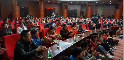 讲座开始前,黎隆武先生讲述了他在九江师专中文系读书时的几个小故事,分享了他对母校的感谢之情。他说,我是九江学院培养的学生,今天回到母校汇报,激动之情难以言表。我至今还记得在母校读书时的事情,感谢母校老师对我的培养和教育,让我终身难忘。他随后起身向在场观众深深鞠了一躬,表达了他对母校领导和老师的真诚谢意,黎副部长的平实而真挚的话语引起了全场师生长时间热烈地掌声。