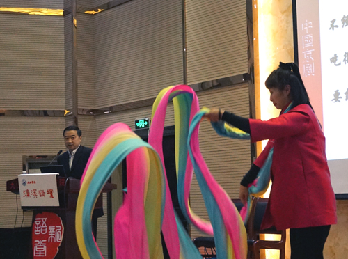 讲座边讲边演,形式生动。孙萍老师表演了《三击掌》中王宝钏的“引子”、《天女散花》的长绸舞、《贵妃醉酒》,叶金森老师演示了武戏当中的走边、起霸、刀枪等基本功,表演了《法门寺》念状和《定军山》选段,使现场听众亲身感受到了京剧名家精湛的艺术功底和京剧艺术的独特魅力,并对如何欣赏、学习京剧艺术有了更深地了解。两位艺术家勉励同学们,京剧艺术台上光彩守目意味着台下的执着、坚守和不怕吃苦,希望同学们在青年时代,无论学习什么专业,都要打好基本功。