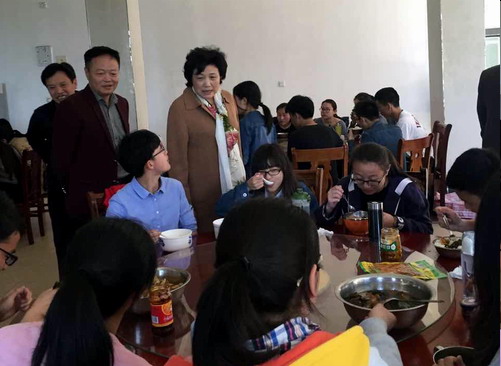 4月20日上午,副校长吴桃娥、杨焱林来到学校庐山实习培训中心检查工作,并看望在此实习的药生学院A1461班、A1531班的学生和带队老师。吴副校长和杨副校长认真检查了庐山实习培训中心的各项服务保障工作,对实训中心的整体工作给予了肯定,同时要求实训中心要进一步规范管理、美化环境,做到热情服务、微笑服务、优质服务。