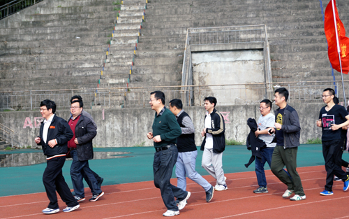 启动仪式结束后,在副校长王万山的领跑下,举行了“徒步长征第一步”:环校2.5公里跑步活动。